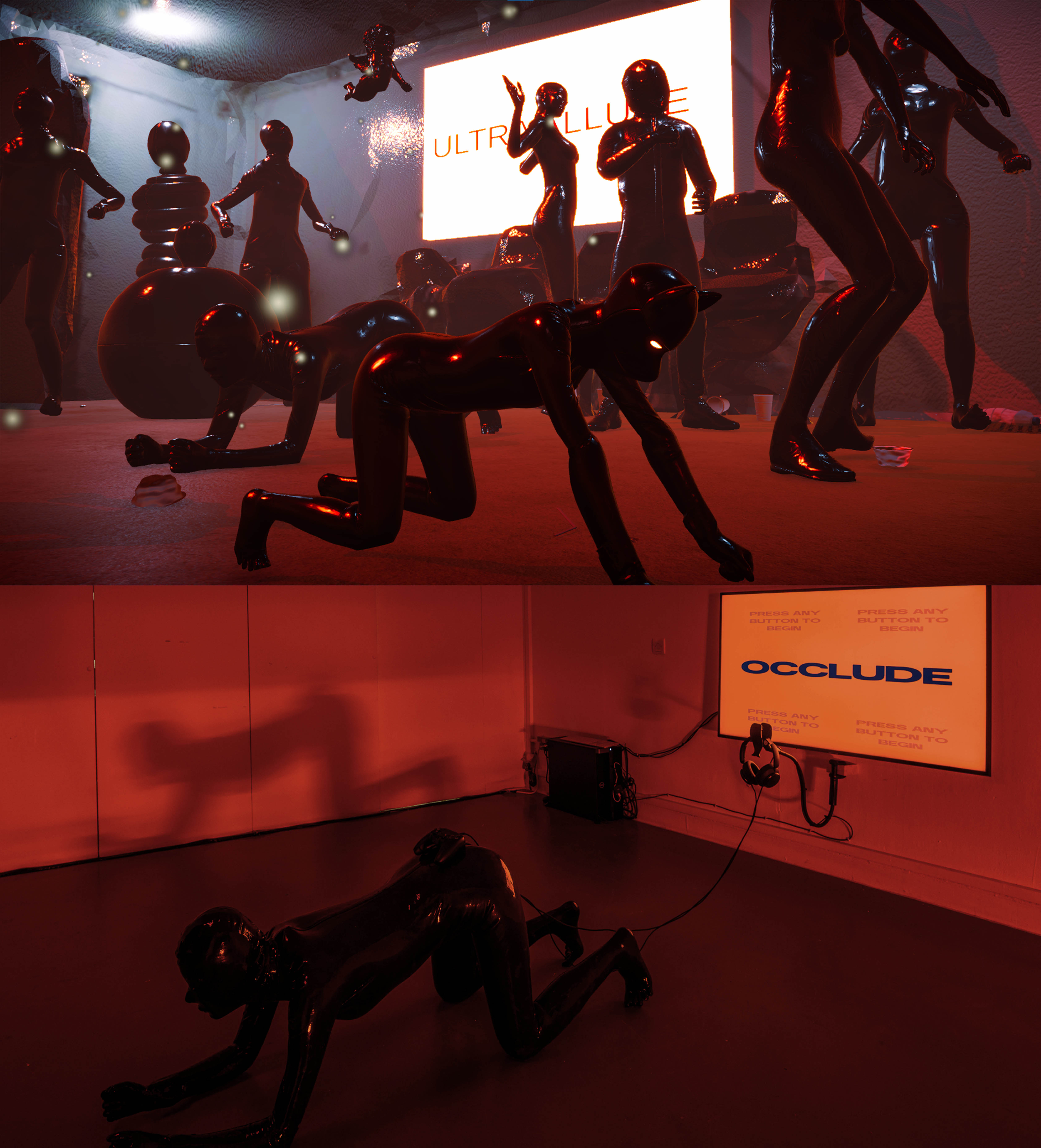 CD: I guess at the beginning, I questioned the idea of bringing rave culture into Slade - into a gallery space. Although Slade as an art school is in many ways not a conventional gallery space, it's still definitely a space that holds a lot of history, and holds a lot of hierarchies in terms of who can get into the space which is normally related to money, power and identification of art as well. So when I decided to bring rave culture, a non-binary subculture into this historically white and prestigious space, I cared very much about the context. In order to bring subversion to this history, one of the things I thought a lot about was staging something that was altering how people conceive this space and questioning the power system that existed within this building already, and that's kind of the foundation of why the game had to be kind of morphed into the real space. To do this, Freddie and I scanned some of the corridors and classrooms which visitors are not allowed to enter, labeled with no entry signs for instance. So it's quite interesting how the relationship of what we can do and how far we can go, was recreated and layered within the game in parallel to the actual gallery room where the game is installed.